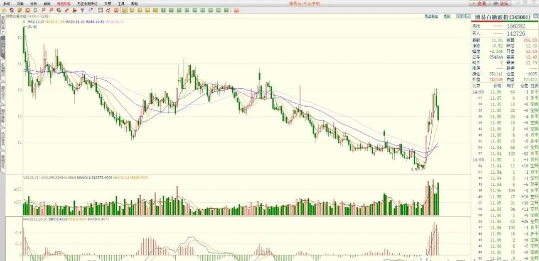 于是从早上的这个持仓,跑路了买方,变成收盘的下图持仓。