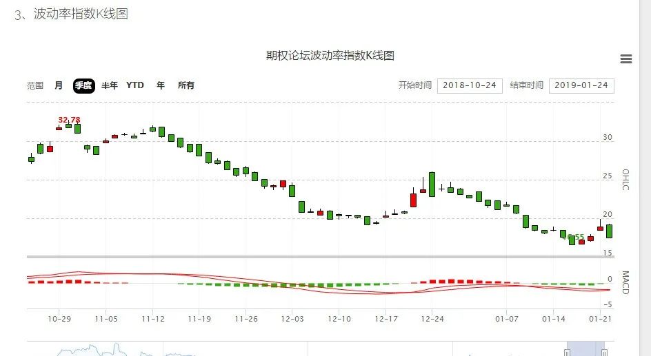 而波动率是这样的走势,大幅度上涨,昨天和今天,降波的比较明显。