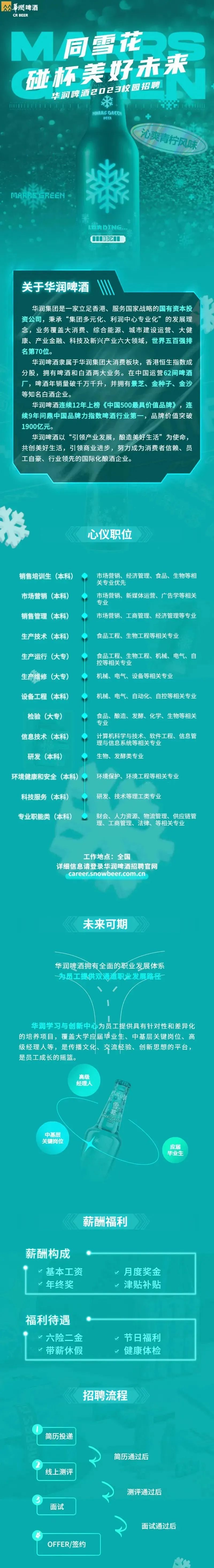央企 | 500强央企,华润啤酒2023春招正式开启!200+岗位,双通道职业发展路径,六险二金&带薪休假