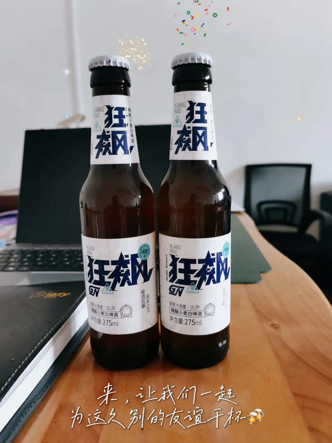 这样的“爆款秘诀”,也被狂飙酒业应用在狂飙啤酒系列的新品打造上。从目前主打的新品来看,同样实现了“全员皆是爆点”:275ml精酿小麦白啤,酒液清澈透明,明显的清新麦芽和酒化香味充分满足当前消费者对于健康营养的高需求;500ml苹果西打风味酒,清甜爽口,果汁含量高达30%,“苹果+啤酒”的创意组合让人眼前一亮;1.5L鲜啤酒,“鲜”字自然是主要卖点,新鲜纯正,畅销餐饮渠道,超大的容量赋予其更高性价比优势......全方位个性化产品矩阵满足各类消费者需求,广受消费者的认可与欢迎!