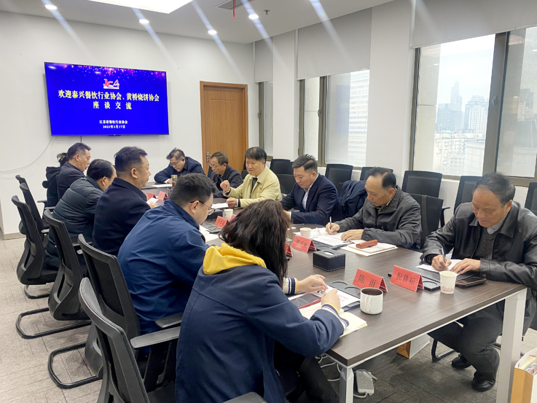 3月17日,泰兴市餐饮行业协会党支部书记吴长元、会长王键、副会长丁俊,泰兴市黄桥烧饼协会会长何健、顾问邵万宽、会员中心主任倪耕耘一行到访省餐饮行业协会,与省餐饮行业协会会长于学荣、资深会长周达志、常务副秘书长葛旭东、党支部书记苏永忠、副秘书长陈雨、刘君、会长助理兼会员服务中心主任奴卉卉、活动会展中心主任于欣欣就成立江苏省黄桥烧饼文化发展研究院等工作进行交流。
