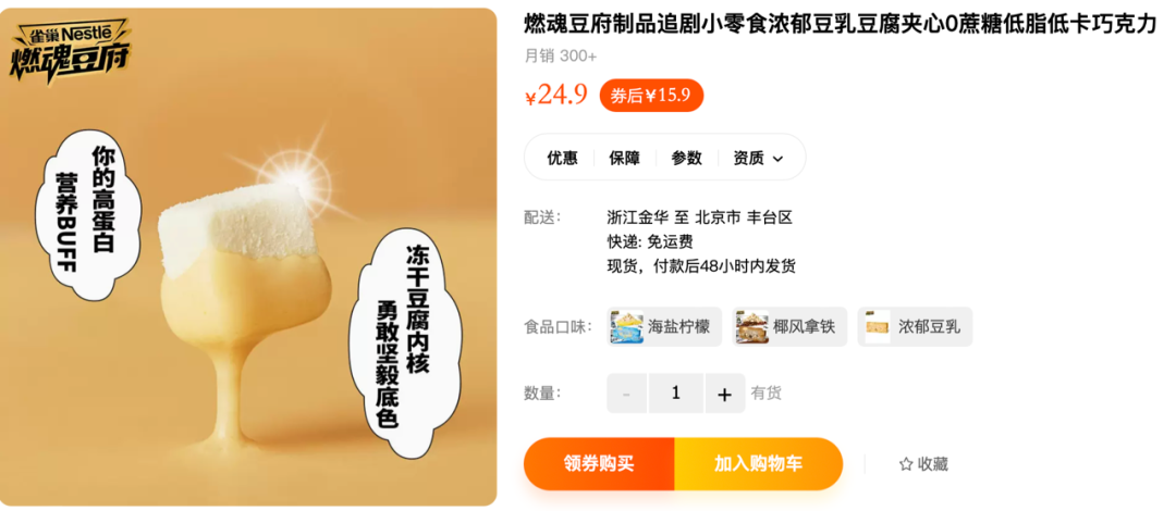嘉植肴是2020年引入中国市场的植物基烹饪食品,在预制菜火爆之前一直被寄予厚望,而后者则是雀巢近期打造的一款本土植物基零食品牌。这标志着雀巢植物基的多品类战略正式落地中国市场,据全食在线了解燃魂豆腐是雀巢在中国市场推出的本土零食品牌,从品牌名称上不难看出,这一次雀巢想要抓住Z世代的年轻消费者。但从名字上看并非能够体现出植物基食品的元素,或许正式这样的设计能够让消费者将目光聚焦在产品口味上,据了解该款食品是以豆腐为原料,外面包裹了一层巧克力脆皮,从包装上的图片展示可以看到,产品的确诱人,像极了雀巢冰淇淋品牌“8次方”。当然该款产品依旧主导不额外添加蔗糖、不含代可可脂、蛋白含量高等卖点,将年轻人所关注的零食需求完美的展示出来。。从包装上可以看到,该款产品能够适用较多的场景,出来独享之外,也适合分享,并且更适合工作、学习、户外等日常场景。而从价格看该产品也十分亲民,目前在天猫旗舰店30克两袋的售价为15.9元,在植物基食品中算是中档价格带。