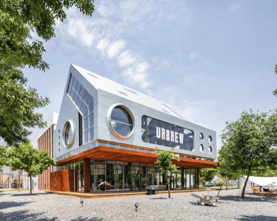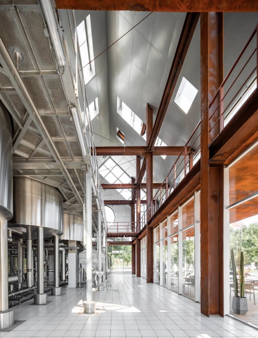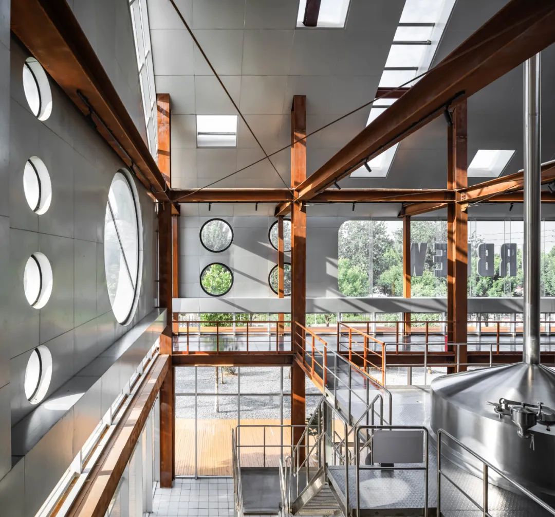该建筑位于中国河北省邯郸市经济技术开发区优布劳啤酒工业园区内,是当地啤酒厂的糖化车间扩建部分,作为整个厂区的形象亮点。我们认为在各种人类的生活、工作场所愈发丰富而具有个性的今天,即使是一间啤酒生产车间,也应该有这座建筑本身的情绪体现:酒精的粗野感、工业的科技感,以及品牌本身的奔放。
