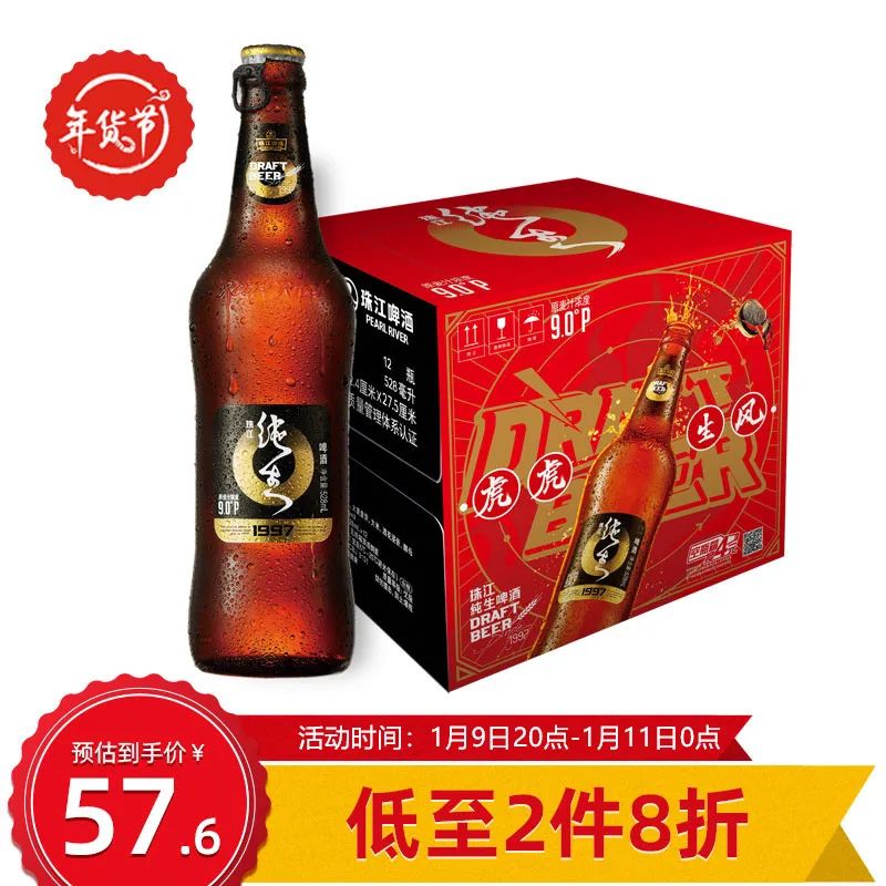 送礼年货 珠江啤酒PEARL RIVER 9P珠江97纯生啤酒528ml12瓶整箱装新老包装随机发货