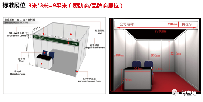 1 、展位服务:按尺寸搭建好展台、场地、地毯、楣牌、洽谈桌一张两椅、射灯二支、插座、保安清洁等; 2、物装展企业自己负责展位设计、搭建、布展等、如需组委会搭建,费用另议; 3、在5月25日以办理参展付款,不保证专业公众号推荐及录入会议相关资料; | |
