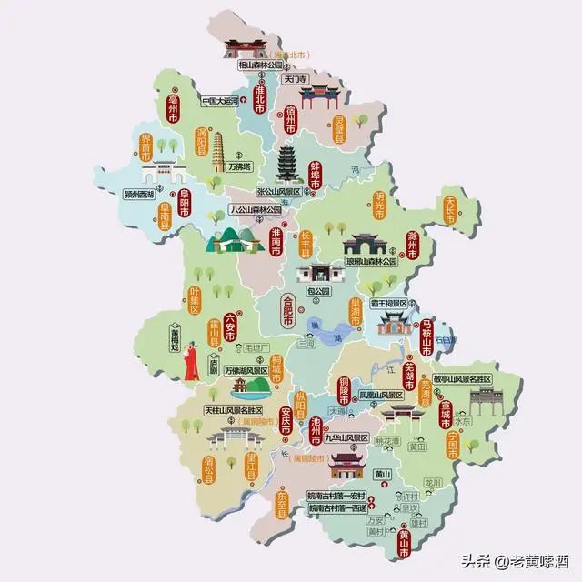 安徽作为酿酒和产茶大省,素来有“南茶北酒”一称。由于恰巧位于秦岭淮河分界线,此线也刚好可以拿来划分安徽当地的情况。淮河以南的安徽地区多种茶产茶,而淮河以北地区,则是皖酒主产区,分布了70%以上的当地名酒。