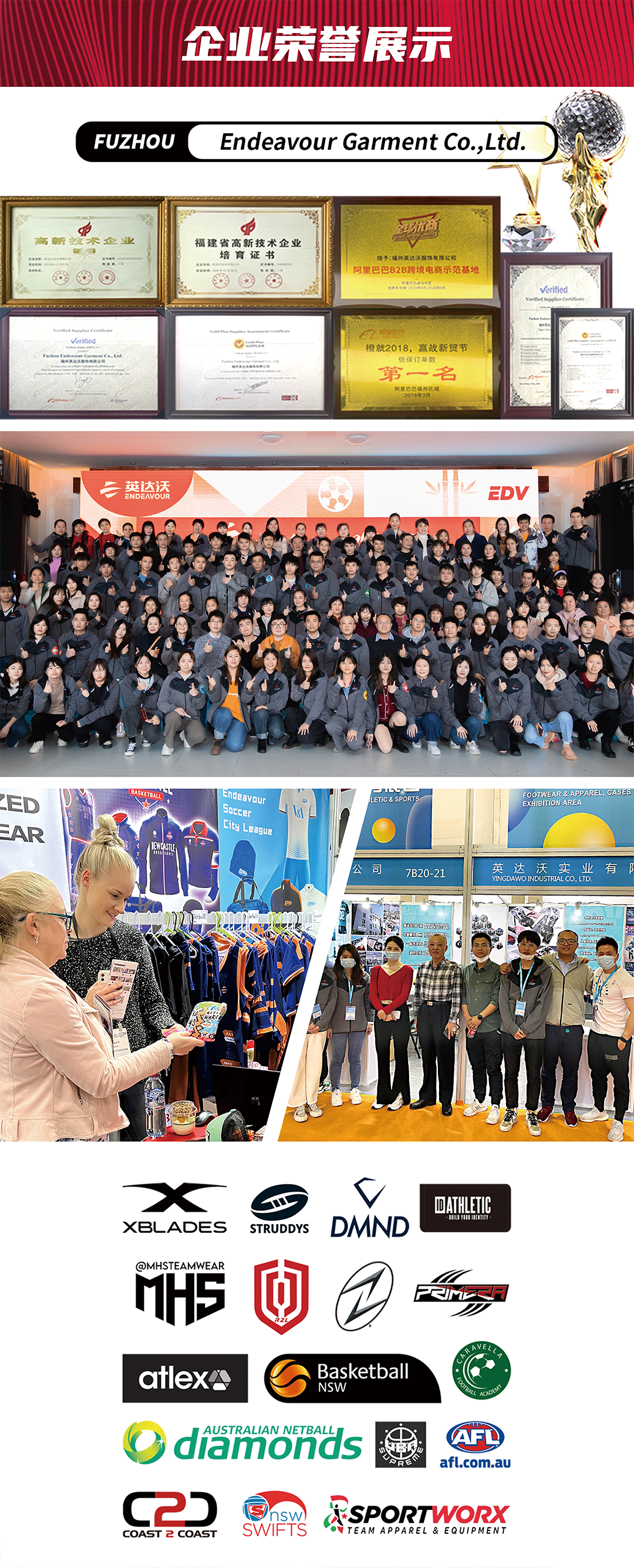 多年来,英达沃实业已发展成为集产品研发设计、版型开发、数码印花、成衣流水生产为一体的现代化企业,拥有一百多台专业进口机械设备,形成了拥有标准制衣流水线、定制化柔性生产线、全自主研发ERP智能管理系统、原创设计团队及海外销售团队的综合型体育用品生产服务商。累计服务国内外10000多个体育团队,5000多家体育俱乐部,公司产品远销100多个国家与地区。