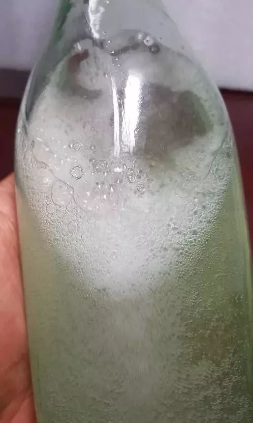 低度白酒是高度酒加水降度而成,其酒花随酒度降低酒花越来越小。