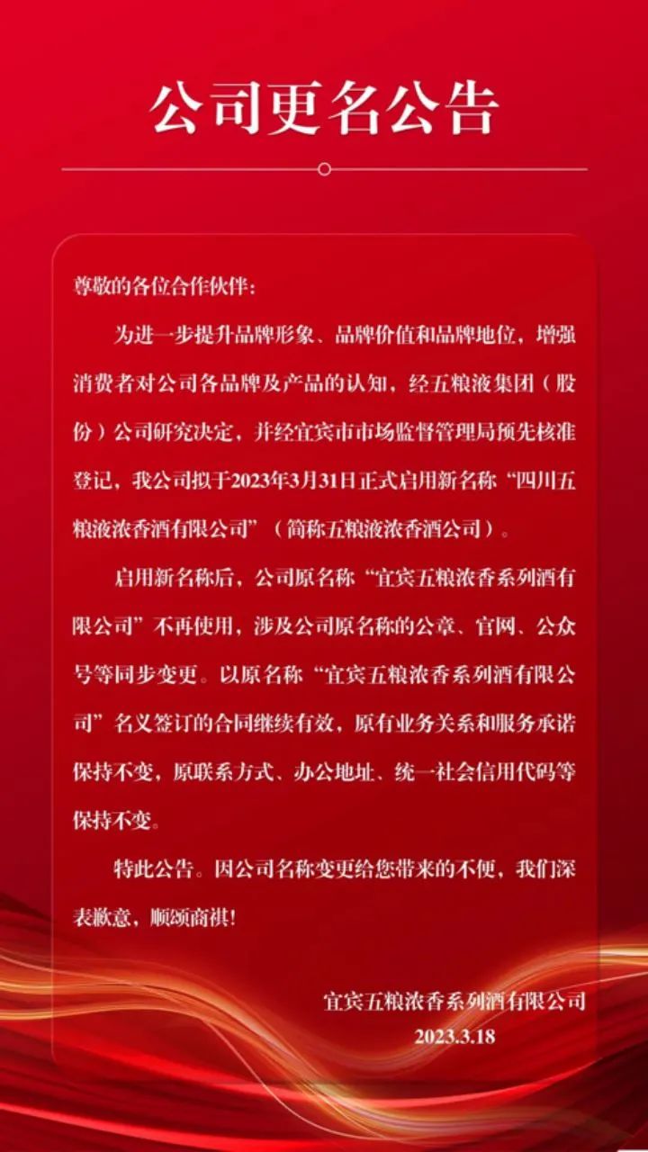 此次更名,是五粮液浓香酒公司进一步强化品牌的明显信号。站在新起点的五粮液浓香酒公司将继续以“双轨并行”方式,加速五粮液家族前行脚步。