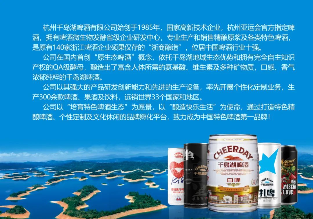 杭州千岛湖啤酒有限公司,始创于1985年,国家高新技术企业,专业从事特色精酿啤酒生产、服务;目前是浙江140家啤酒企业中硕果仅存的“浙商酿造”,位居中国啤酒行业十强,非常有实力!