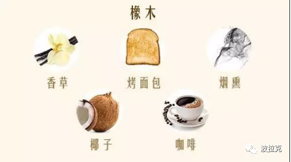 葡萄酒的橡木味来源于橡木桶,主要有以下几种香气矿物、焦糖、咖啡、肉豆蔻、皮革、椰子、奶油、糖果、香草、巧克力等。