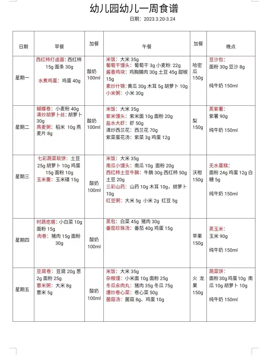 【惜食】苏州市善耕教育集团勤惜实验小学校第七周学生营养菜单(3月20日—3月24日)