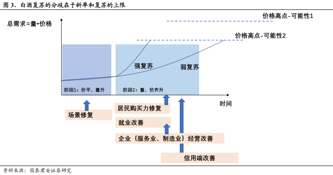 驱动白酒需求修复的核心在于就业、收入及信心恢复。我们认为,后续白酒消费复苏的力度大小取决于居民收入水平的修复力度,其本质在于服务业、制造业企业经营改善及后续带来的就业修复,另外,经济恢复对白酒需求有较强拉动作用(尤其是白酒价格体系)且显著领先于后者,其力度及持续性值得关注。