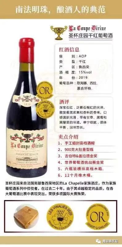圣杯庄园来自法国南部鲁西荣的La Chapelle家族酒庄,作为家族葡萄酒系列中佼佼者,在过去二十年,由于其卓越稳定的品质,在各大葡萄酒比赛中表现突出,荣获多项国际大赛殊荣。