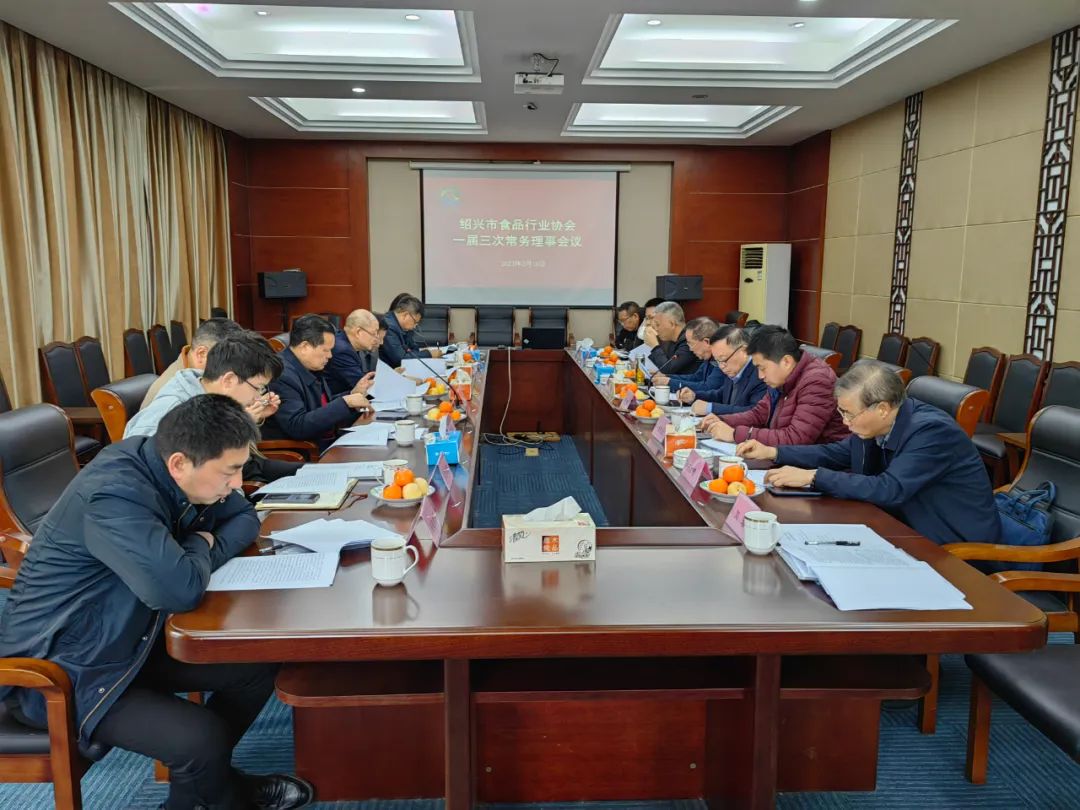 3月18日上午,绍兴市食品行业协会一届三次常务理事会议在绍兴咸亨酒业有限公司召开。协会一届常务理事会14位常务理事参加了会议,市经信局相关领导受邀出席会议。