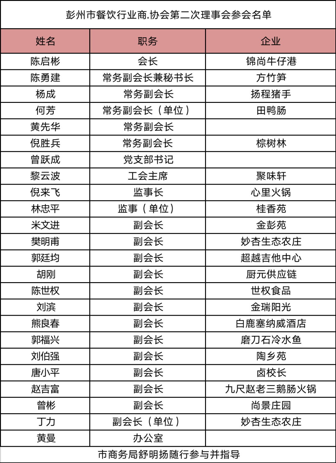 2. 全面贯彻“走出去,引进来”的战略,建立健全商·协会内外部沟通机制,积极调动大家的主动性,全力擦亮彭州招牌、打响彭州美食品牌。