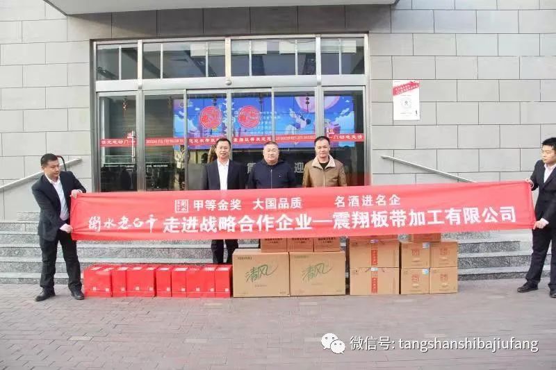 2023年3月8日,衡水老白干营销有限公司唐山市区经理彭磊以及销售团队在中间人陈敬岗的陪同下,共同应邀来到天津市震翔板带加工有限公司进行交流,天津市震翔板带加工有限公司董事长张震生、办公室主任王东等出席接待活动。