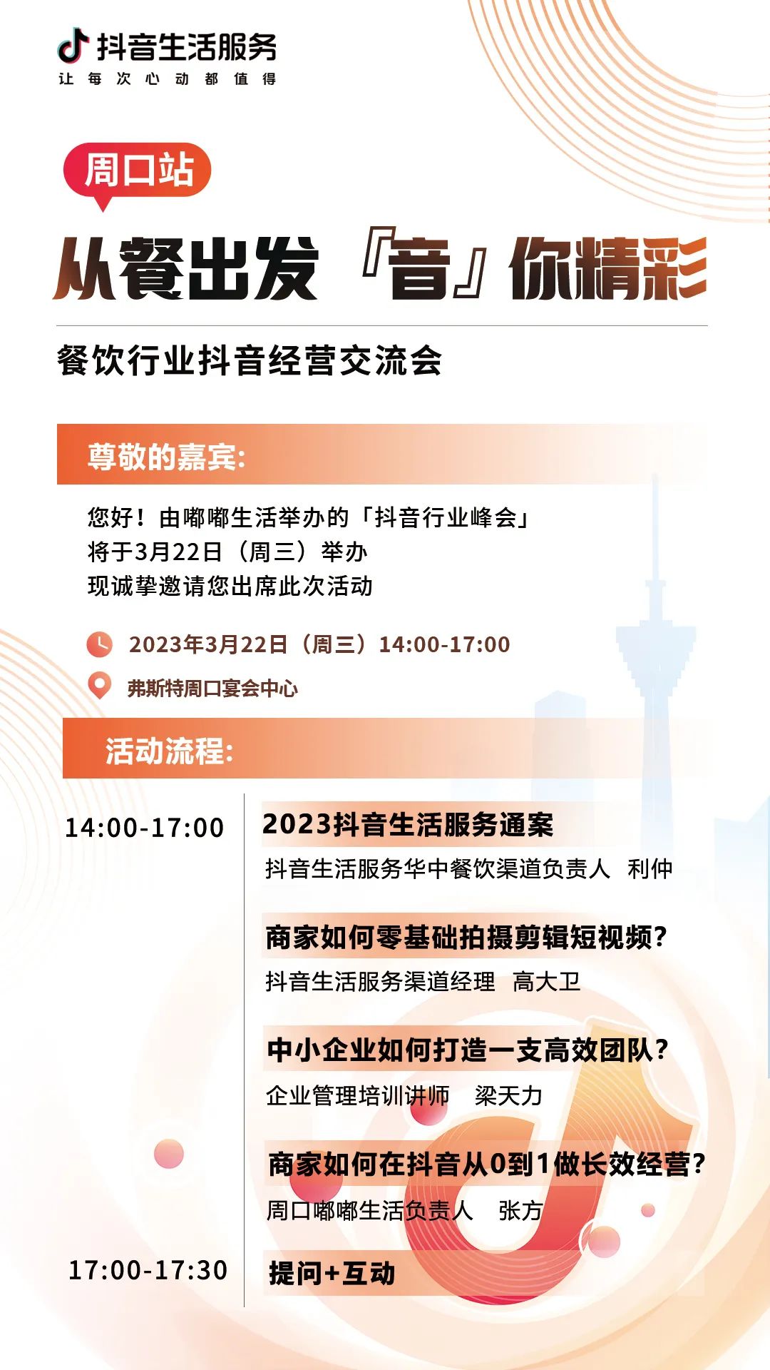 倒计时1天!周口餐饮行业抖音经营交流会来袭,百名业界大咖云集于此!