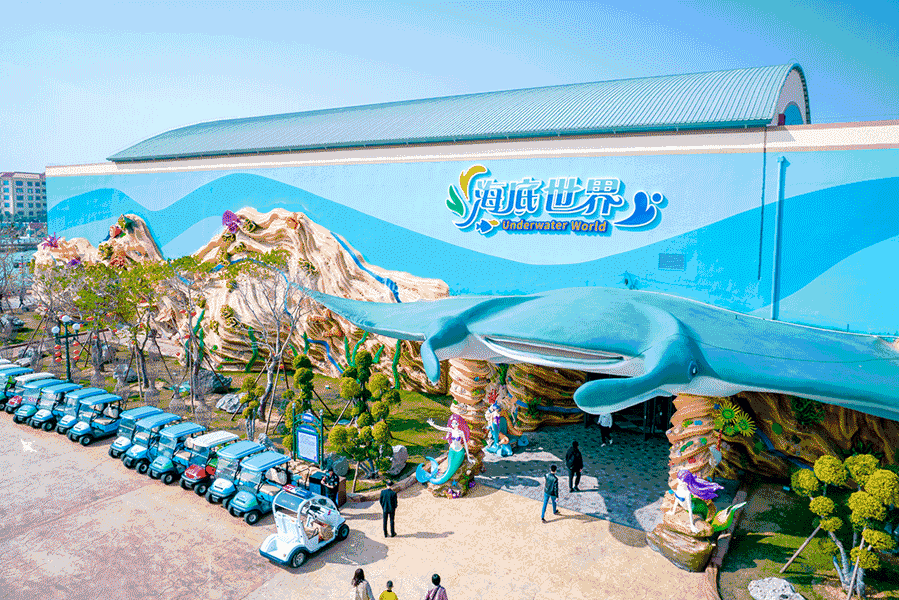 海底世界:不仅能在沙滩上看到憨厚可爱的长寿海龟们,还能在触摸池里近距离的与海洋鱼类来一个亲密接触;置身于远古的海底沉船,近观海怪与鲨鱼搏斗的场景,在神秘的鲨鱼湾中,成群的鲨鱼在身边游弋;200米的海底隧道中,上万条色彩缤纷的鱼类围绕在身边,仿佛在遮掩那传说中已经消失的亚特兰蒂斯文明遗迹;在水下剧场,美人鱼姑娘带来童话般的人鱼奇缘和水下芭蕾,精彩的表演让游客们流连忘返。