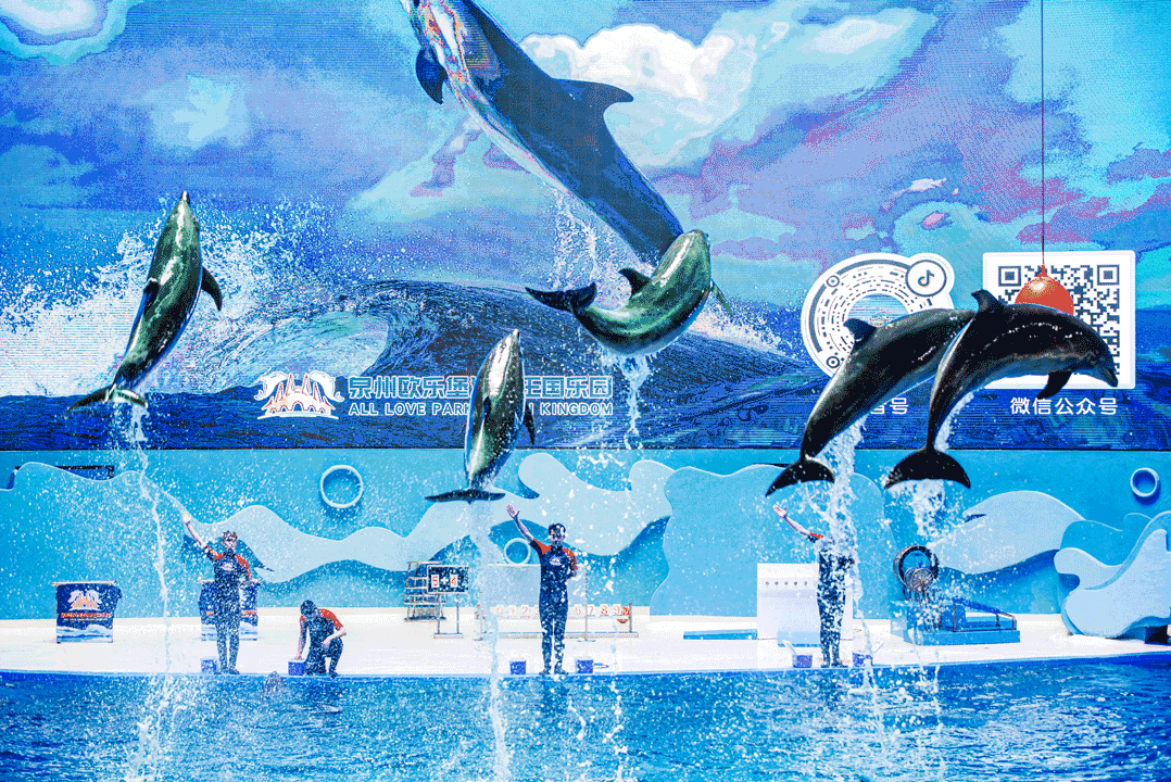 上演群豚齐跃、高空顶球、呼啦圈大赛
