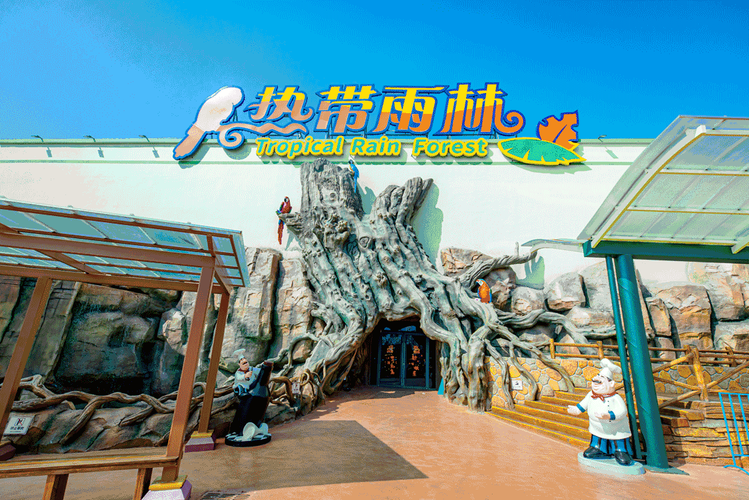 热带雨林:带来沉浸式的海洋氛围热带雨林馆再现南美洲亚马逊流域原始森林风情,主要展示热带雨林的稀有生物,如巨骨舌鱼、火鹤、银龙、血鹦鹉、蓝鲨、金刚鹦鹉、松鼠猴、以及远古物种鳄龟、鳄鱼、大鲵、鲟鱼等多种珍贵的热带、亚热带的鱼、兽类等。