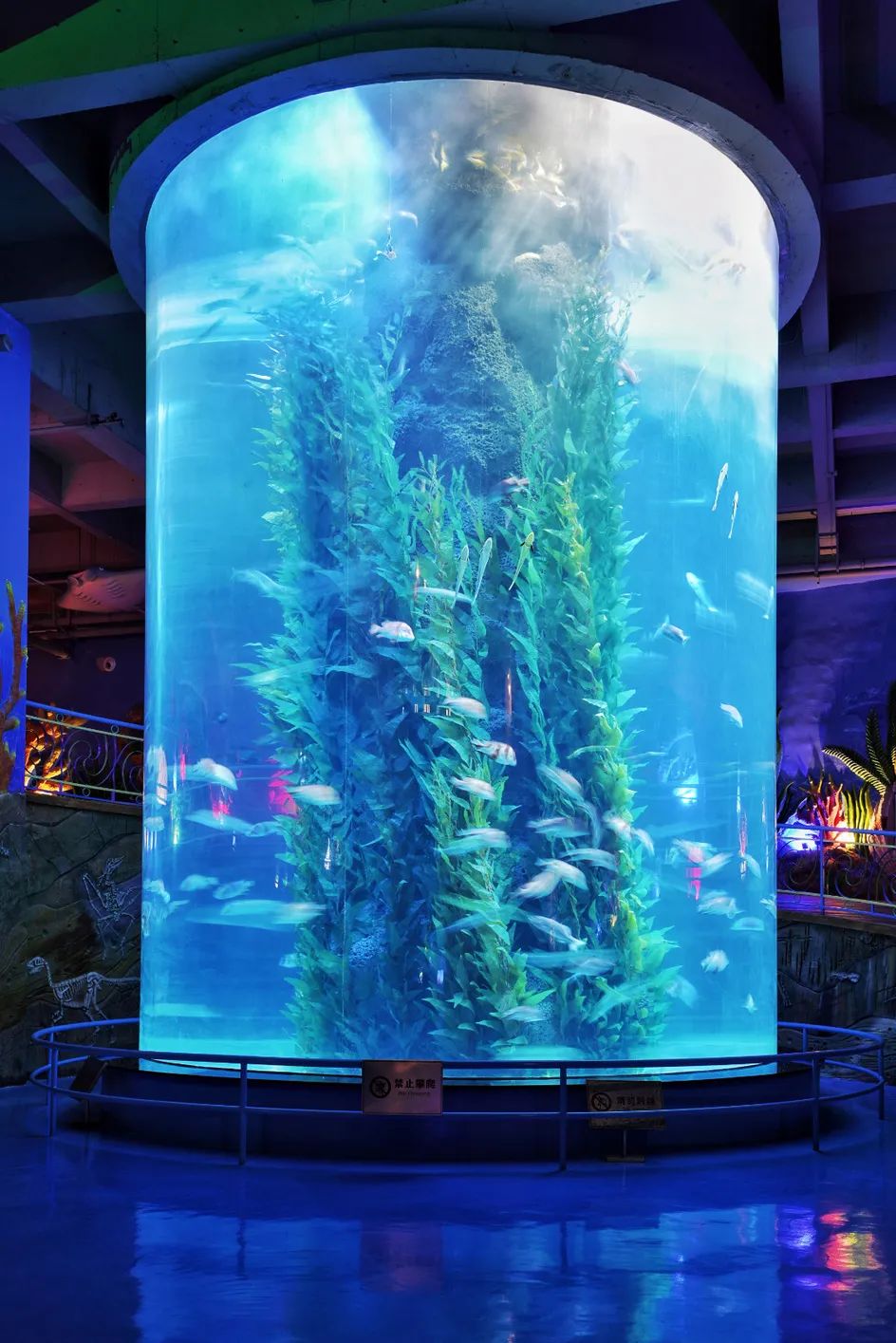 高度10米、直径8米、壁厚长达40公分的圆柱展缸,壮观雄伟,瑰丽多姿。