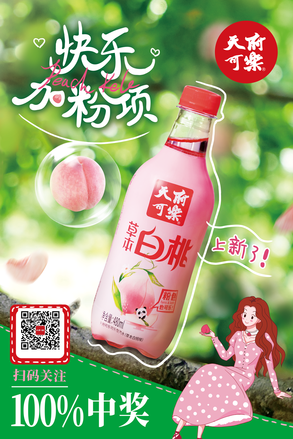 天府可乐草本白桃高颜值,粉色液体非常吸睛,口味融合了草本与白桃的风味,小口品草本,大口享白桃。