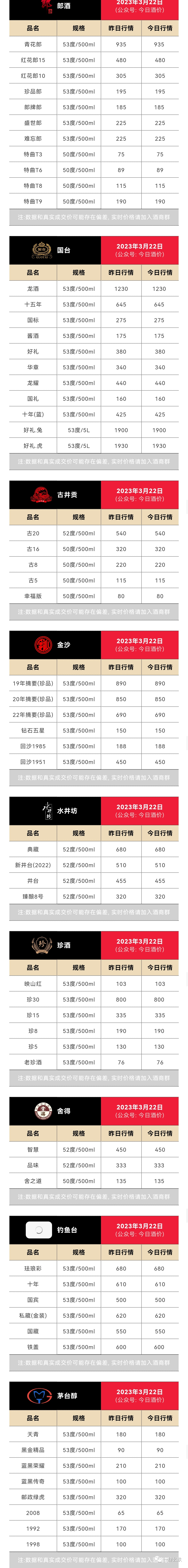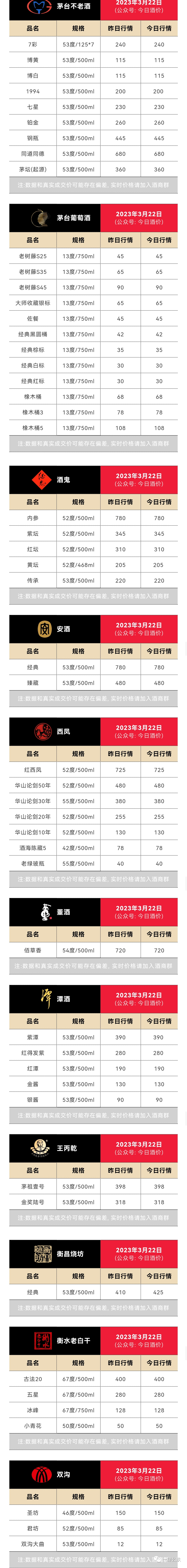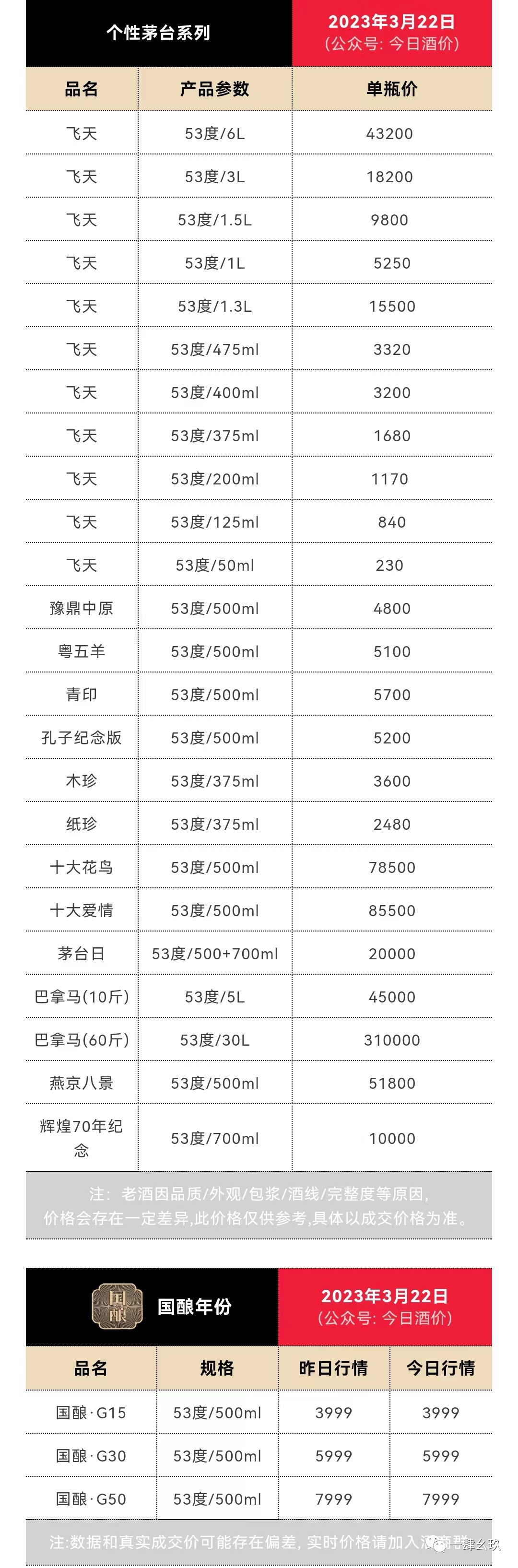 以下报价为各大名酒参考价(未含税费/物流/人工等成本)