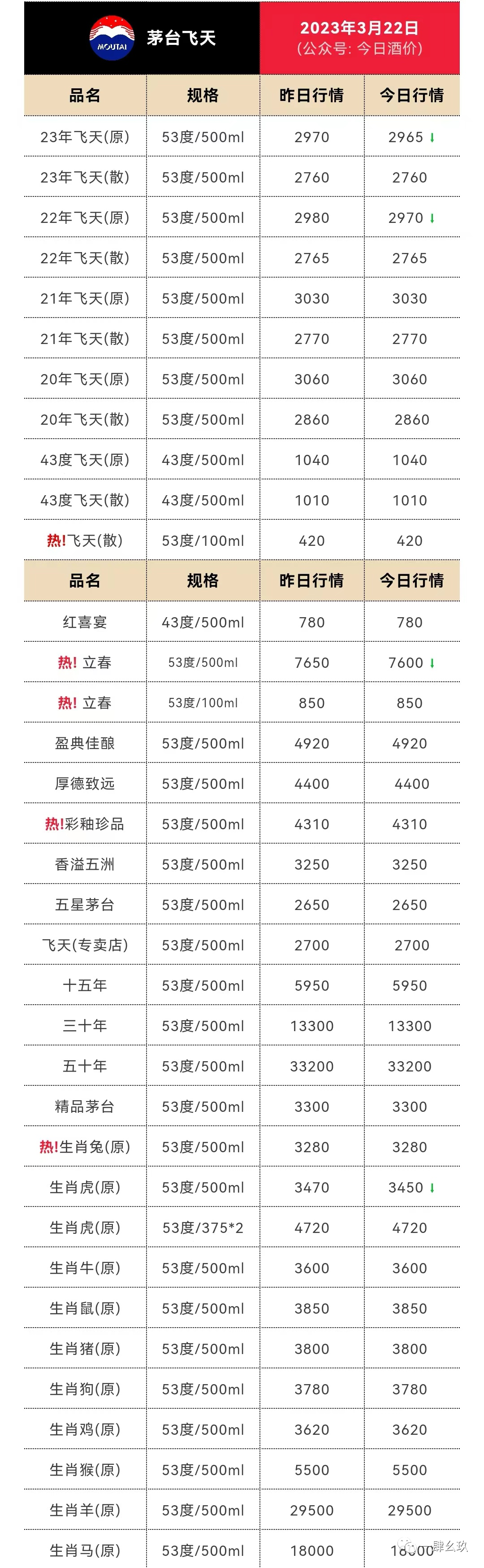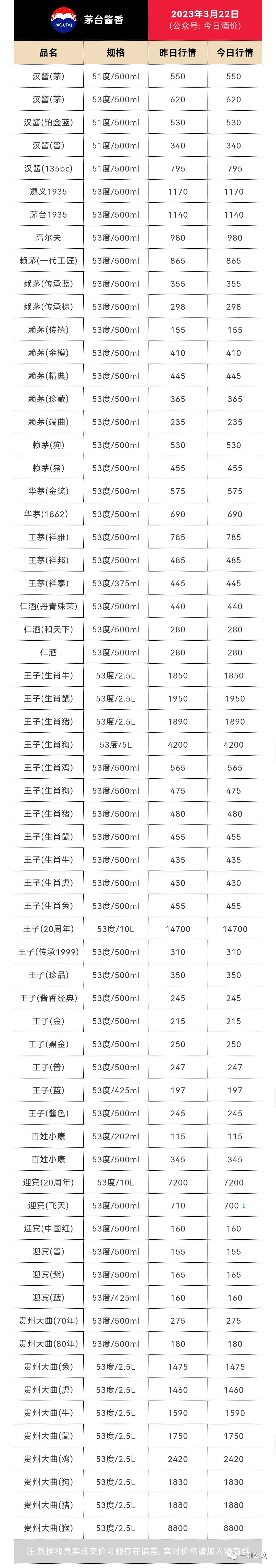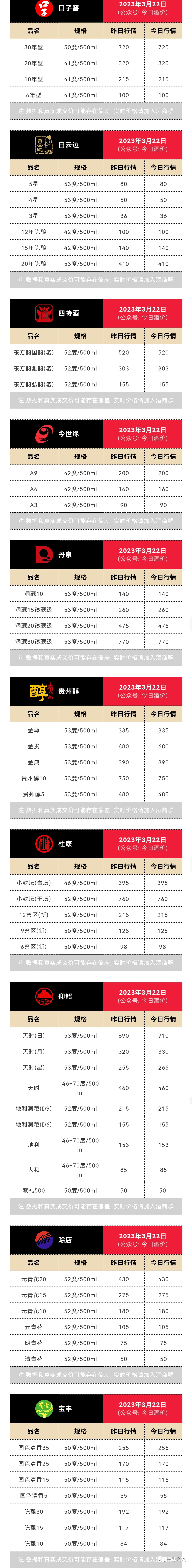 以下报价为各大名酒参考价(未含税费/物流/人工等成本)