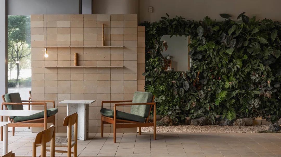 一进店内就能看见一面生机勃勃的绿植墙,加上随处可见的插花,直让人心情舒畅,店内主要采用绿植、家居、甜品三种元素叠加,每一种都是见了会让人心情舒畅的存在。大大的落地窗再配上朴素淡雅的原木色,舒适感十足。