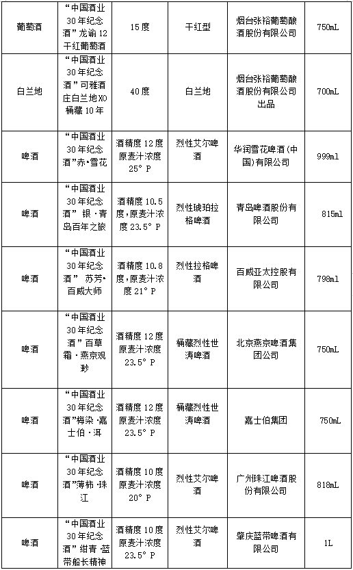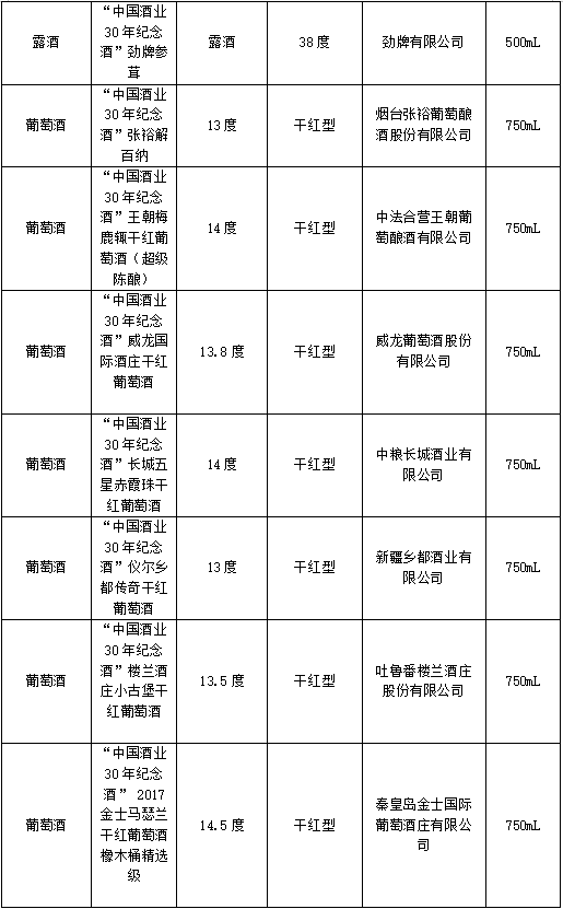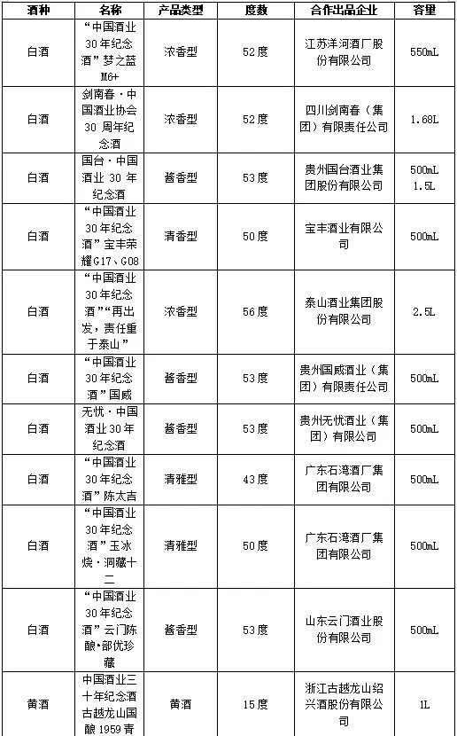 中国酒业30周年纪念酒一览表
