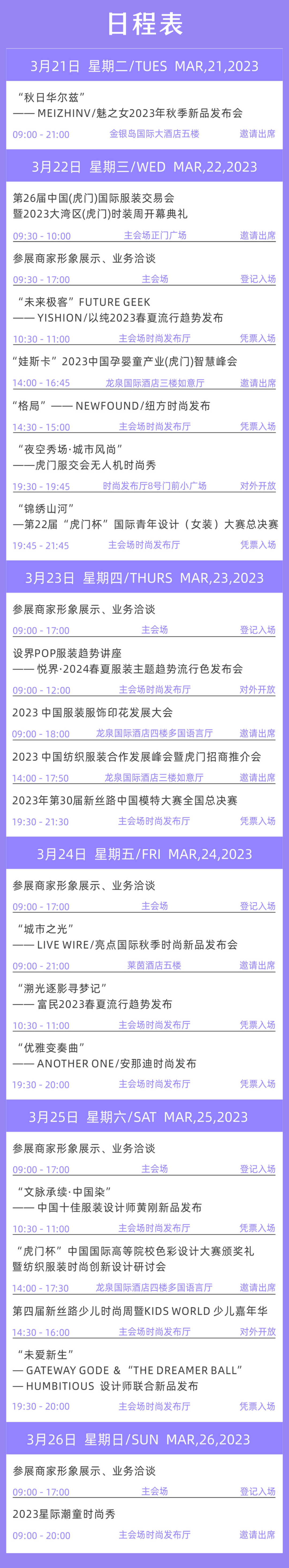 本届服交会即日起至3月26日,持续维持5天,每天9点到17点,每日有不同的服装秀,欢迎扫码领门票前来观看。