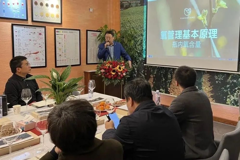 会上,烟台唯万盛公司葡萄酒氧管理技术总监王忠浩、烟台唯万盛公司市场营销总监徐小龙、林德(中国)叉车有限公司冀东大区销售总监张海洲、林德(中国)叉车有限公司张家口区域经理梅立阔4位专家分别围绕葡萄酒最新酿造技术、氧管理、橡木塞产品、葡萄酒产品等方面知识进行讲解。