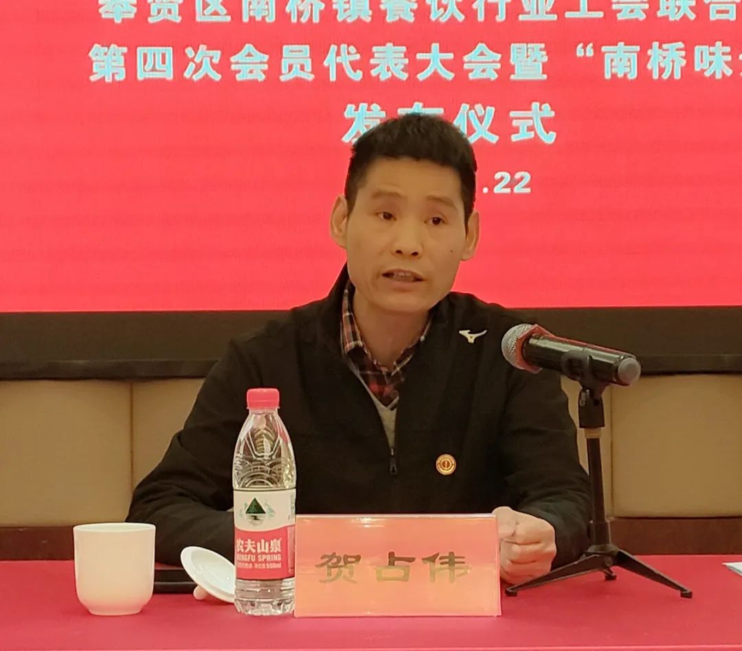 区总工会党组成员、副主席贺占伟向南桥镇餐饮行业工会换届选举大会的胜利召开、“南桥味道”抖音号的正式发布表示热烈的祝贺。对今后五年南桥餐饮行业工会工作提出: