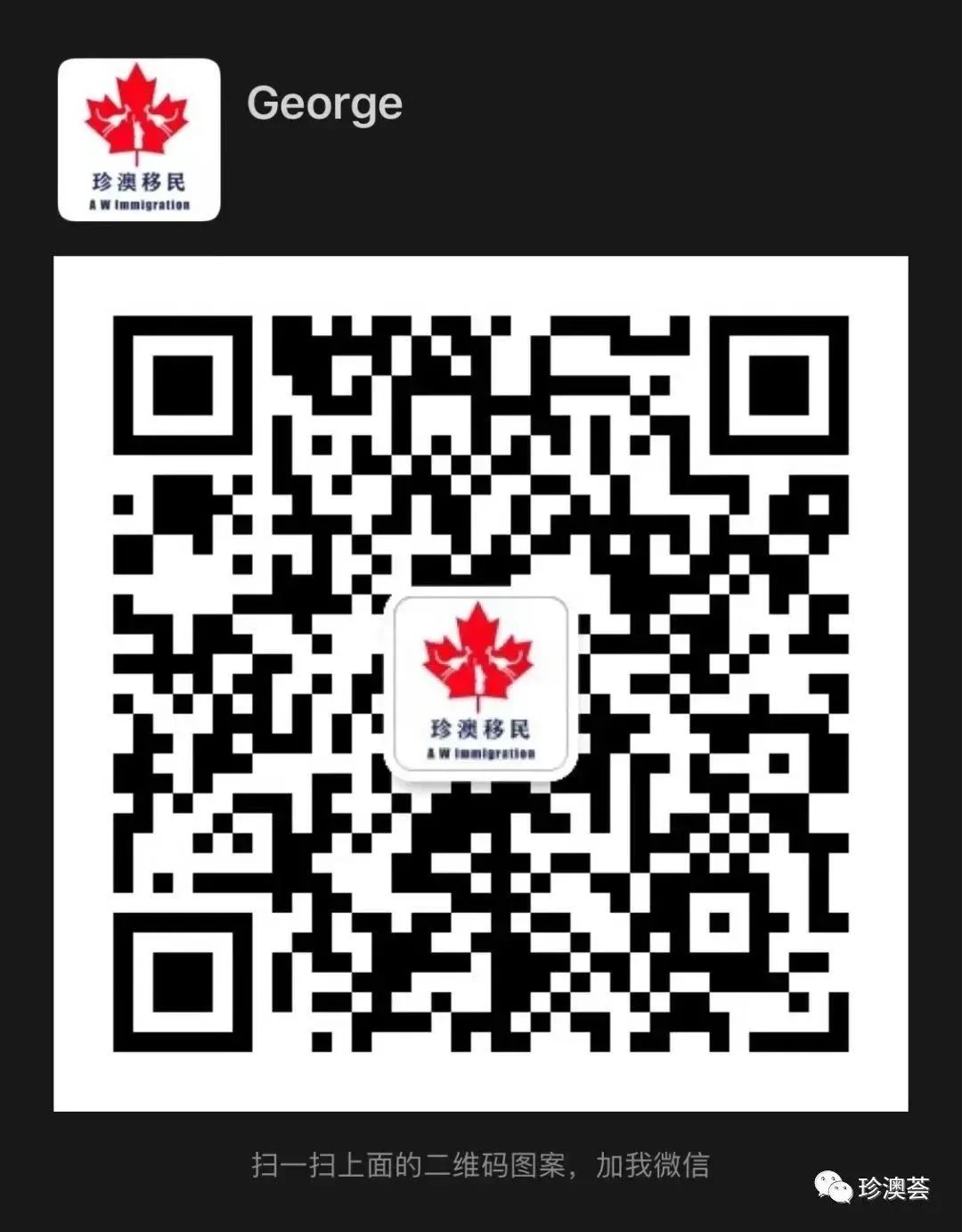 如果你还想进一步了解当地的生活水准和文化类型,欢迎添加以下微信二维码找到您的珍澳私人顾问进行咨询,我们也将为您及时关注行业最新政策和动向。