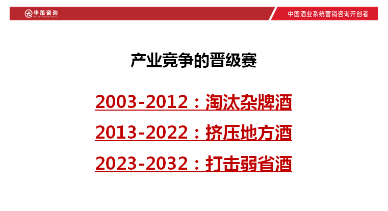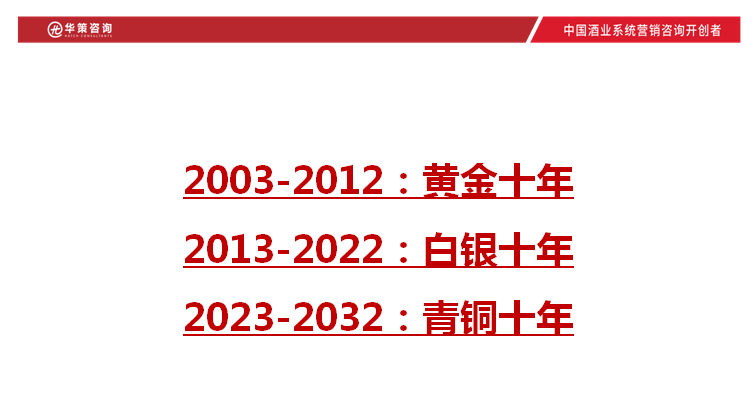 任何产业的发展都会遵循周期性的规律。从行业发展的宏观层面来看,华策咨询认为,经过2003-2012年的“黄金十年”,到2012-2022年的“白银十年”,白酒产业从2023年将开启十年新征程,进入“青铜十年”。在这一新十年里,白酒产业将开启强者与强者竞争的时代。