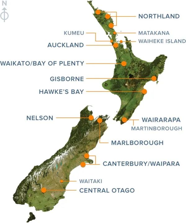 6-10款来自新西兰不同产区的优质葡萄酒。