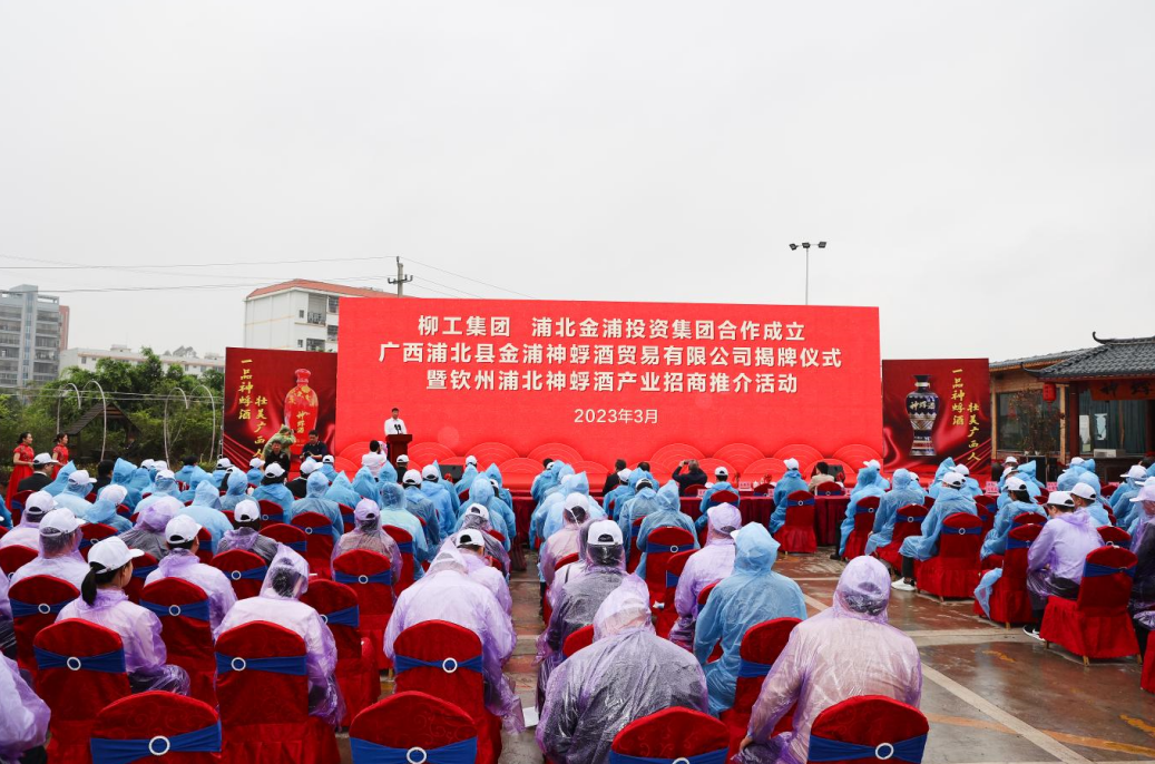 3月20日,浦北县举行柳工集团与浦北金浦投资集团合作成立广西浦北县金浦神蜉酒贸易有限公司揭牌仪式暨钦州浦北神蜉酒产业招商推介活动。自治区国资委副主任唐爱斌,柳工集团党委书记、董事长郑津,钦州市委常委、政法委书记、浦北县委书记古保华等分别致辞。县委副书记、县长杨永冲主持仪式。中国华能集团广西分公司党委书记李宝山,广西中医药大学副校长冷静,广西交通投资集团副总经理冯菊明,广西旅游发展集团副总经理韦贵儒,广西林业集团副总经理陈继勇,自治区工信厅食品工业处副处长周默、县人大常委会主任班博文等领导嘉宾出席仪式。