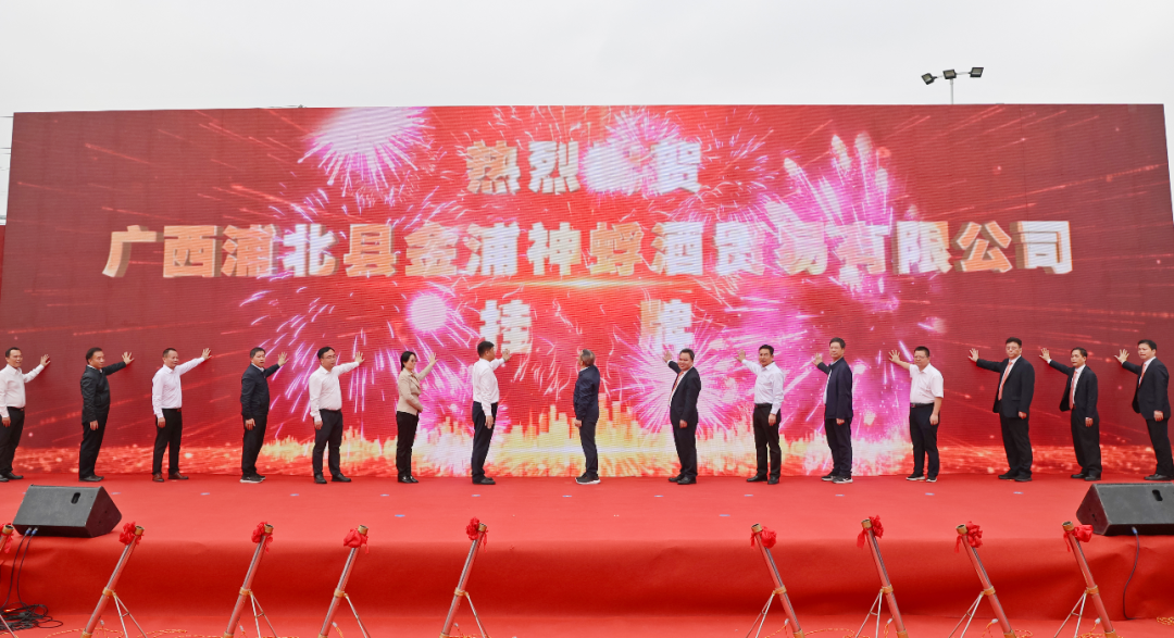 △与会领导嘉宾共同为广西浦北县金浦神蜉酒贸易有限公司揭牌