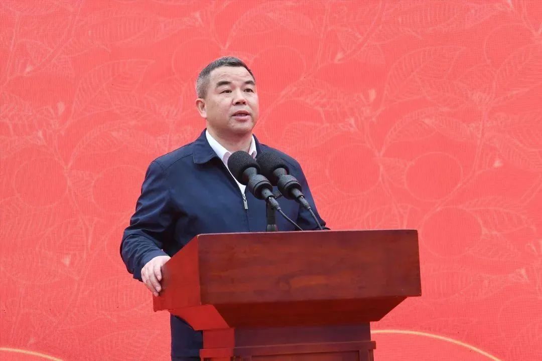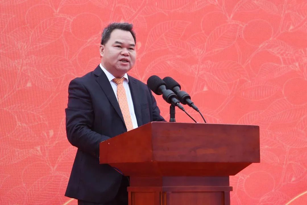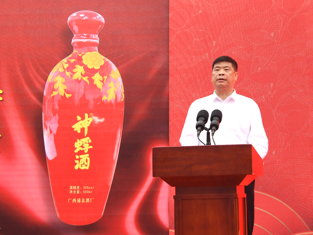 唐爱斌在致辞中希望柳工集团和浦北县携手共进,持续贯彻落实好自治区“振兴桂酒”的战略部署,引导和扶持好金浦神蜉酒贸易有限公司打响桂酒的名特优品牌,做好“振兴桂酒”文章,推动广西酒产业高质量发展;做好“宣传效应”文章,推动神蜉酒品牌全方位打响;做好“以酒为媒”文章,推动产业提动能合作创双赢。