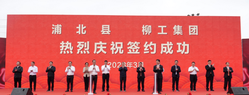 县委常委、常务副县长胡钧,柳工集团副总裁王太平分别代表浦北县人民政府与柳工集团签订战略合作协议,与会领导嘉宾共同见证签约。