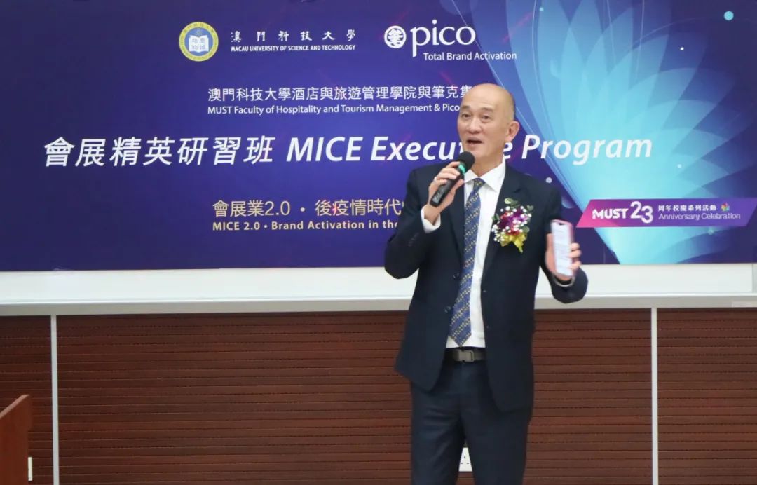由澳門科技大學酒店與旅遊管理學院與筆克集團聯合舉辦的首屆「會展精英研習班」開課儀式於2023年3月18日在澳科大隆重舉行,目的旨在學術界與業界緊密合作,共同培養大中華地區會展專業精英人才,積極推動會展行業的可持續發展。