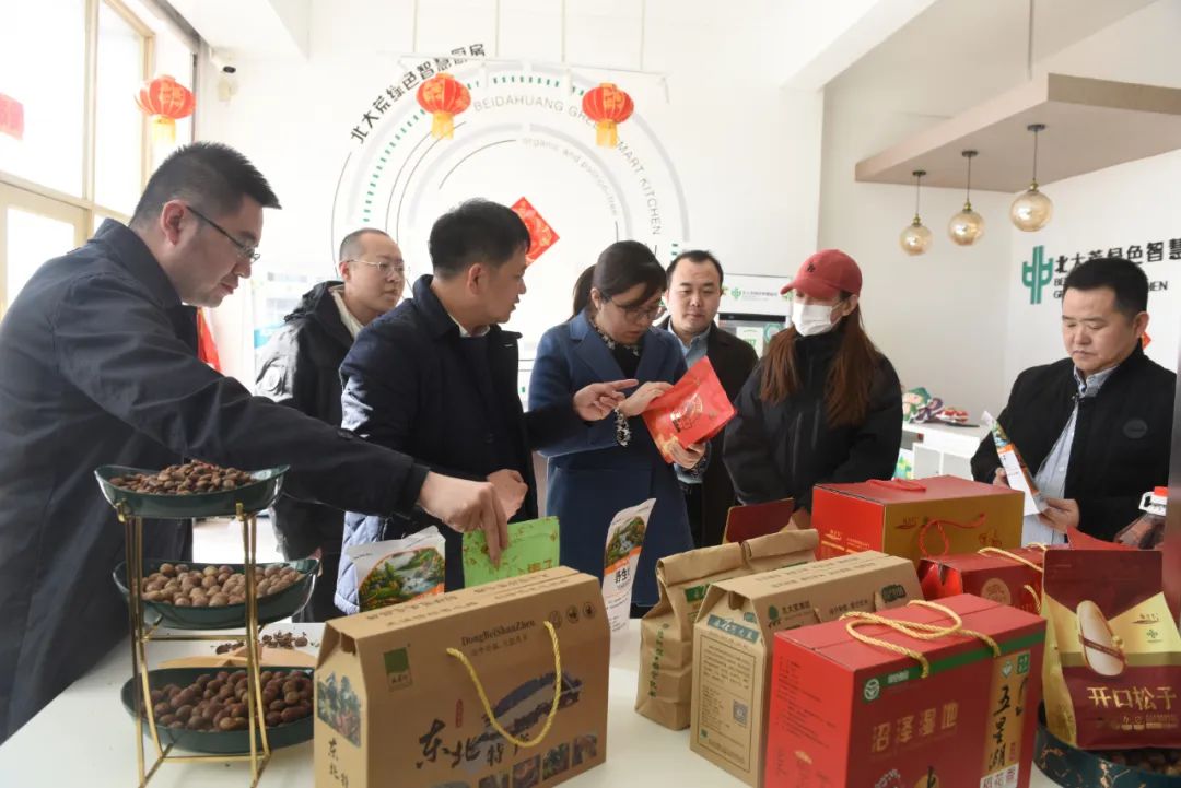 调研组一行来到北大荒绿色智慧厨房,听取了华启伟对产品的详细介绍,并现场品鉴了平欧榛子,表示有意向将纳入食品集团优选榜单。