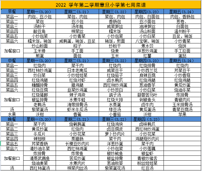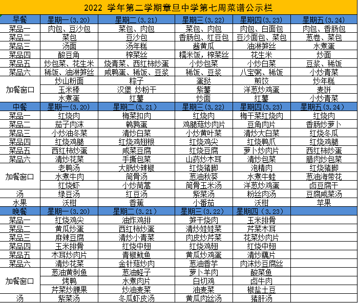 【章中“食”光】章中集团第7周菜谱(3.20-3.24)