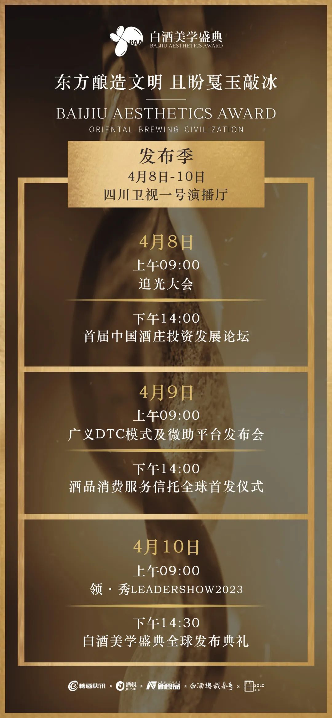 2023年4月8日至10日,白酒美学盛典全球发布,更多精彩,敬请期待。