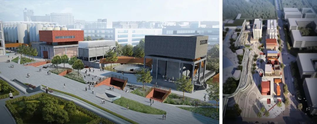 为何要整体保护?这要回溯到上文提到的对啤酒厂价值的判断——没有必要肢解一个还可以使用的生产线,其“踩高跷”般的形式,也受到2013年建筑师刘珩蛇口浮法玻璃厂深双主展场入口的改造项目启发。叠加的形式创造性地消解了保护和开发间的二元对立。