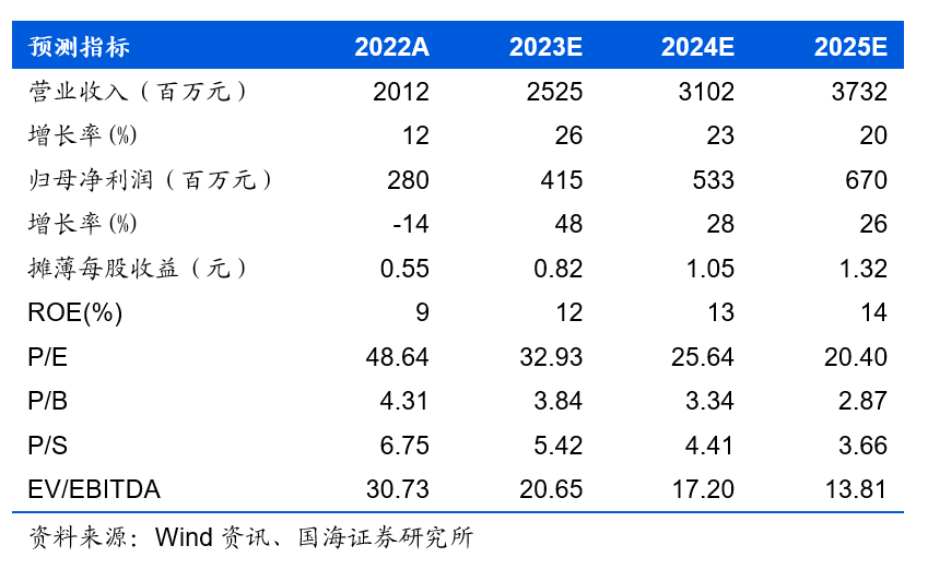 4、盈利预测和投资评级:我们认为外部因素存在短期扰动,下调盈利预测,但由于外部因素的短期扰动消除,公司未来将继续实现稳步增长。我们预计公司2023-2025年EPS分别为0.82/1.05/1.32元,对应PE分别为33/26/20倍,维持“增持”评级。