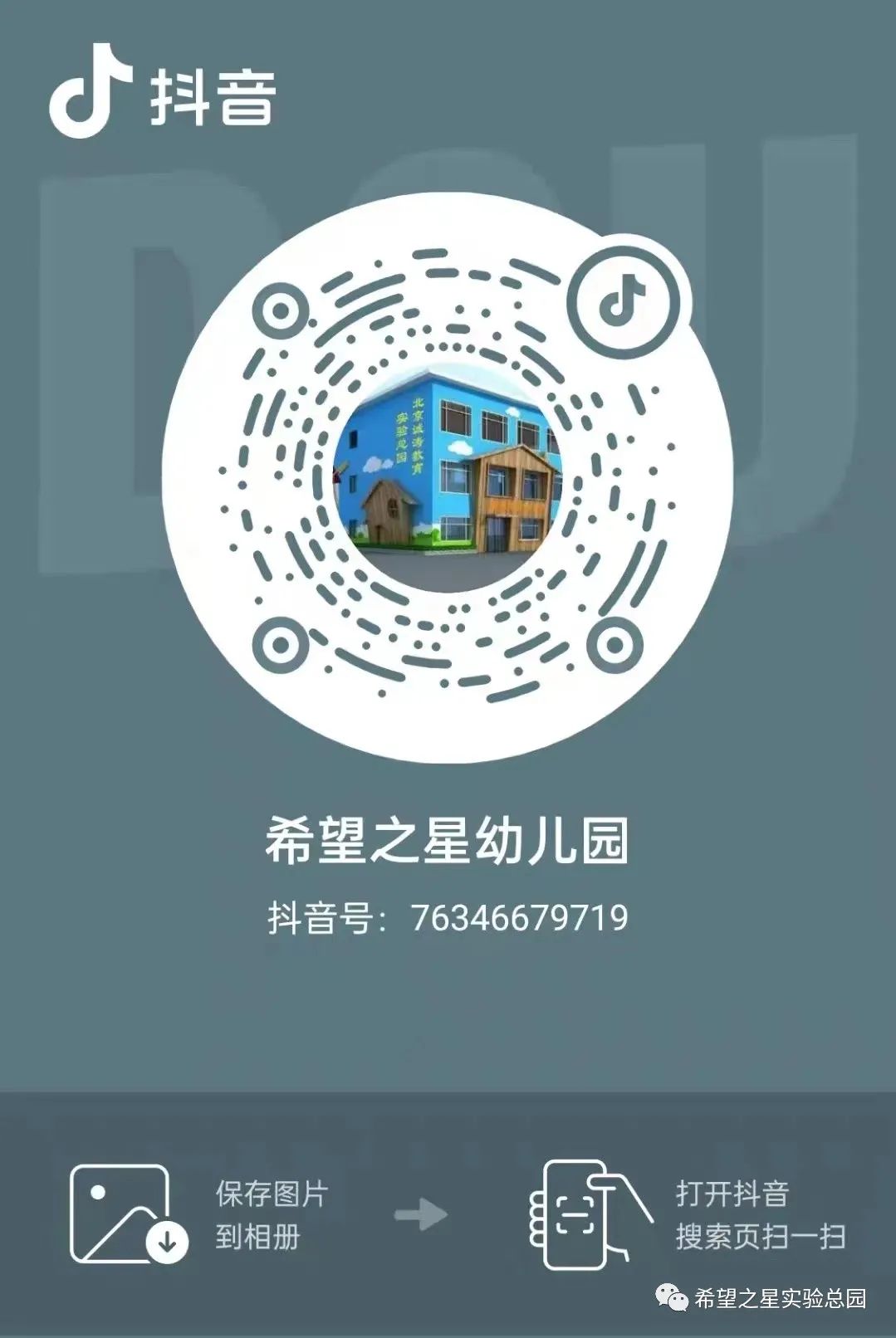 希望之星幼儿园抖音平台已开通!快快扫码关注我们更多精彩瞬间吧!