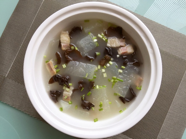 材料:冬瓜、木耳、香葱、生姜、盐、食用油、鸡精、酱油。