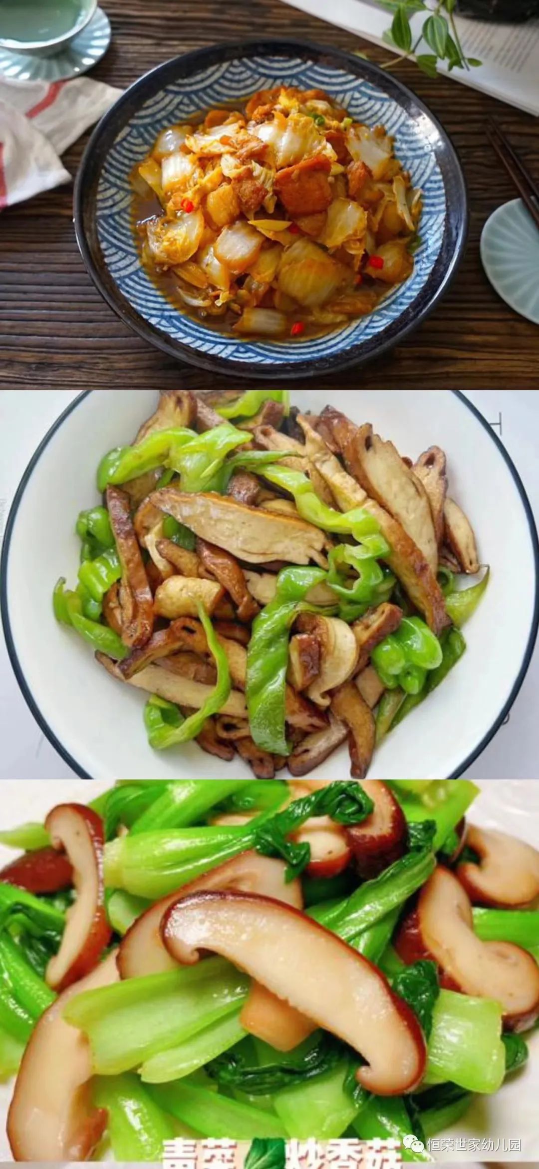 青菜炒香菇 番茄鸡蛋汤
